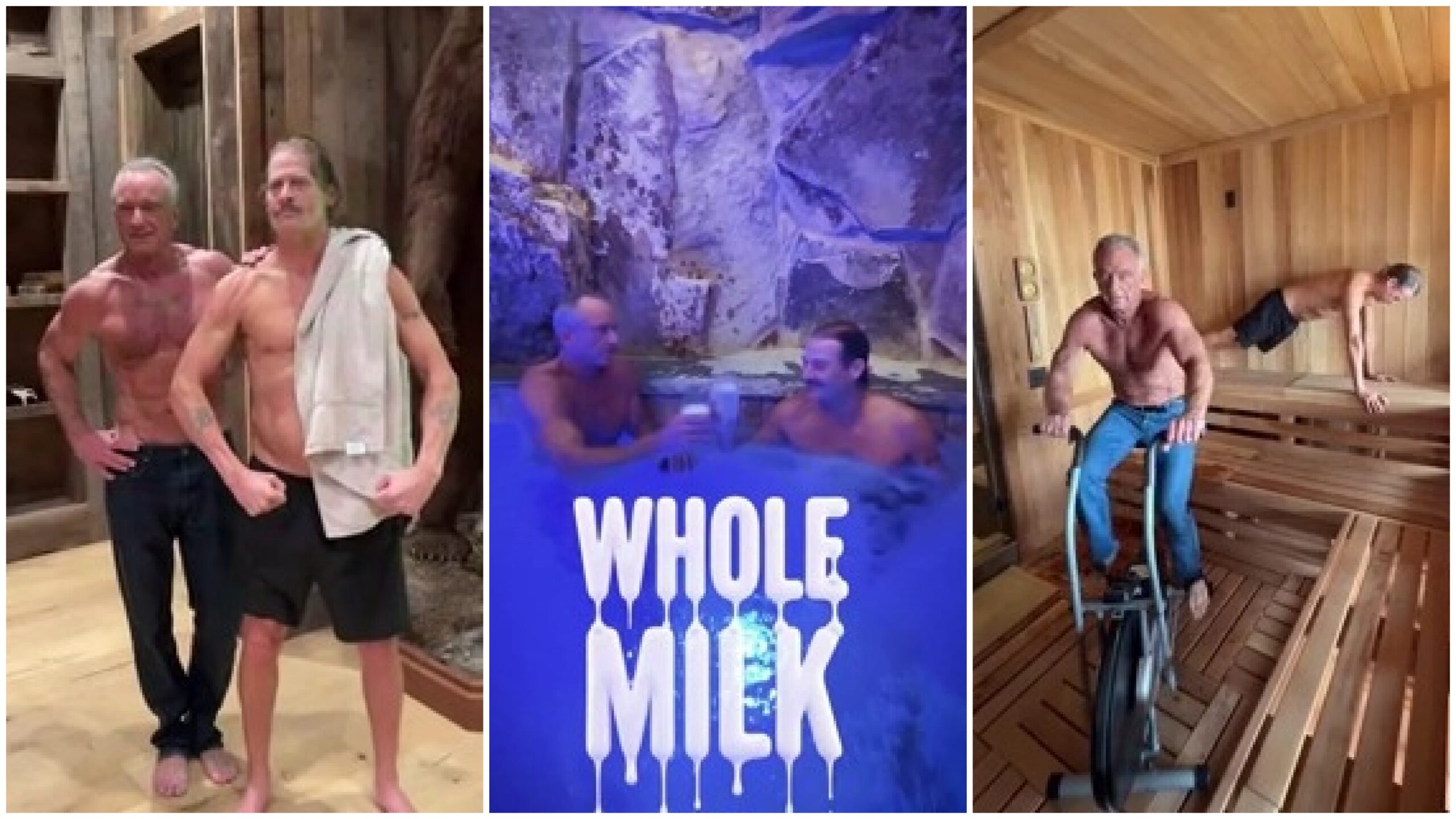 The workout features Rock performing sit-ups with Kennedy assisting and includes scenes of Kennedy riding a stationary bike while in a sauna. At one point, Rock humorously flashes his middle finger at the camera during his turn on the bike. The unconventional workout continues with Kennedy taking a cold plunge while still dressed in his jeans, leading to a casual moment where he searches for Rock, who is found relaxing in a pool.