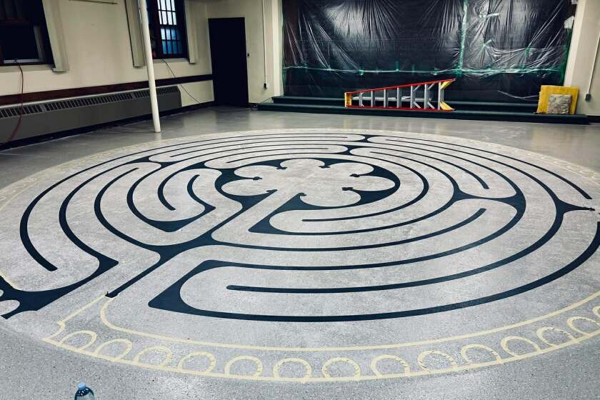 The construction of the labyrinth required removing asbestos from the floor and installing new flooring. Fortunately, Lisa Moriarty, an artist affiliated with The Labyrinth Society, was found to paint the labyrinth. “It took her about two and a half days to complete it,” Sanders noted.