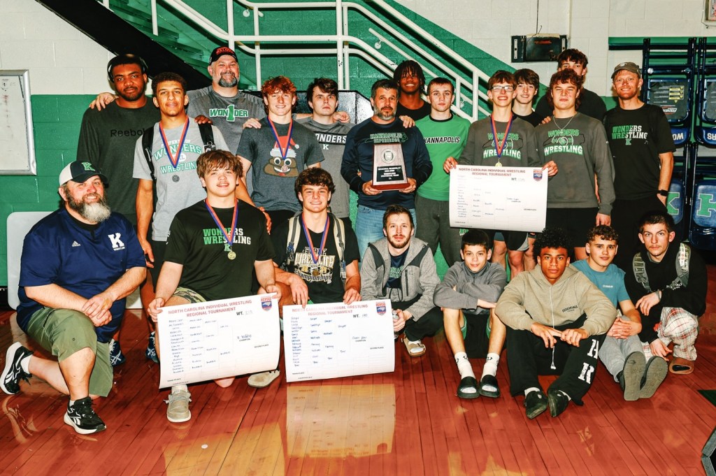 A.L. Brown High School hosted the 7A West Regional and finished second to Davie with 147 points. The Wonders celebrated three regional champions: Landon Logan (120 pounds), Gavin Yow (190 pounds), and Kaulton Kuddie (215 pounds). Notably, Yow boasts a record of 47-1, Kuddie stands at 46-2, and Logan is 43-5. Additional highlights included Chase Hernandez, who was the runner-up at 150 pounds, and Mason Cook, who finished third at 157 pounds. Everon Riddle (132) and Quentin Whisonafe (heavyweight) also placed fourth.