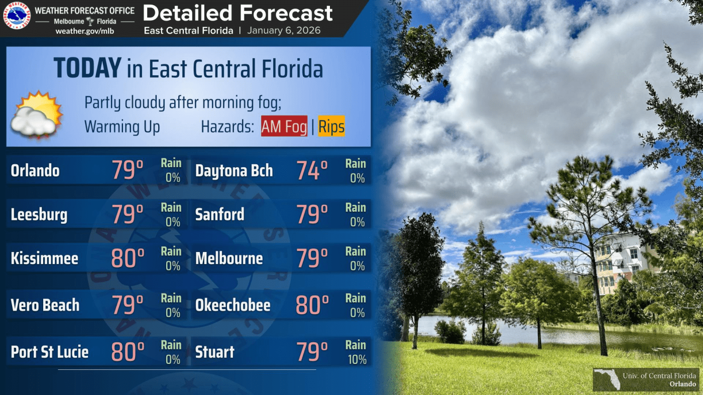 UPDATE: Central Florida is experiencing a significant weather shift today as temperatures are set to rise, just in time for outdoor activities. The National Weather Service (NWS) Melbourne reports that the region will transition from a foggy morning to partly sunny skies by early afternoon, making it an ideal day for many.