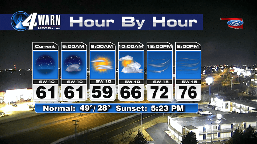 UPDATE: Oklahoma City is experiencing an unseasonably warm day as temperatures are set to soar into the upper 70s, marking a significant shift in the weather pattern. Morning lows registered between the upper 50s and lower 60s, but residents can expect a rapid rise in temperatures this afternoon.
