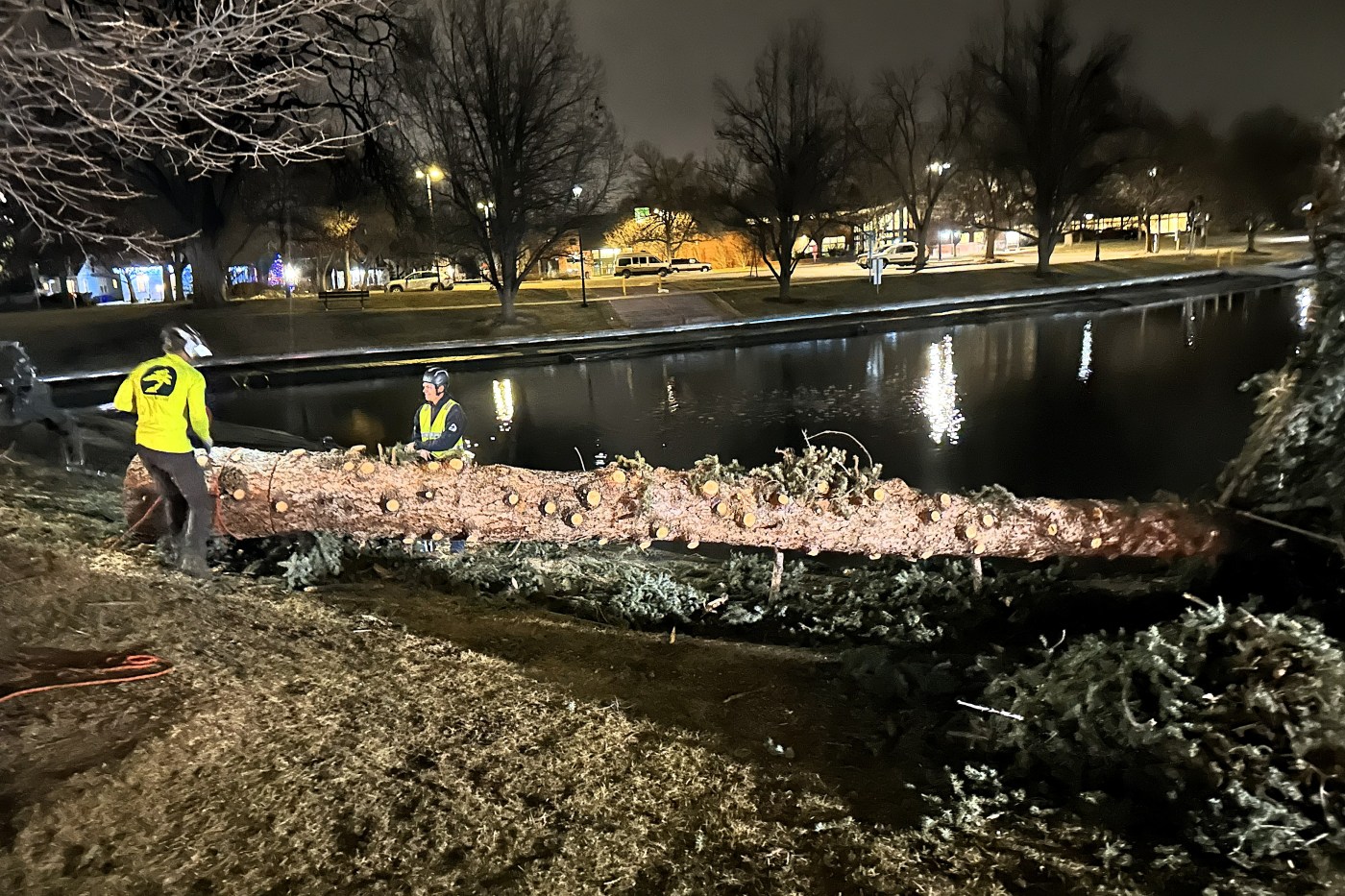 At least two cars were damaged at the intersection of Ninth Street and Lincoln Avenue due to fallen trees. A majestic 70- to 80-year-old blue spruce was uprooted in Civic Center Park, crashing into Foote Lagoon. Loveland Urban Forester Jeff Caputo was on the scene, noting additional downed trees near 50th Street and Taft Avenue and along Wilson Avenue.