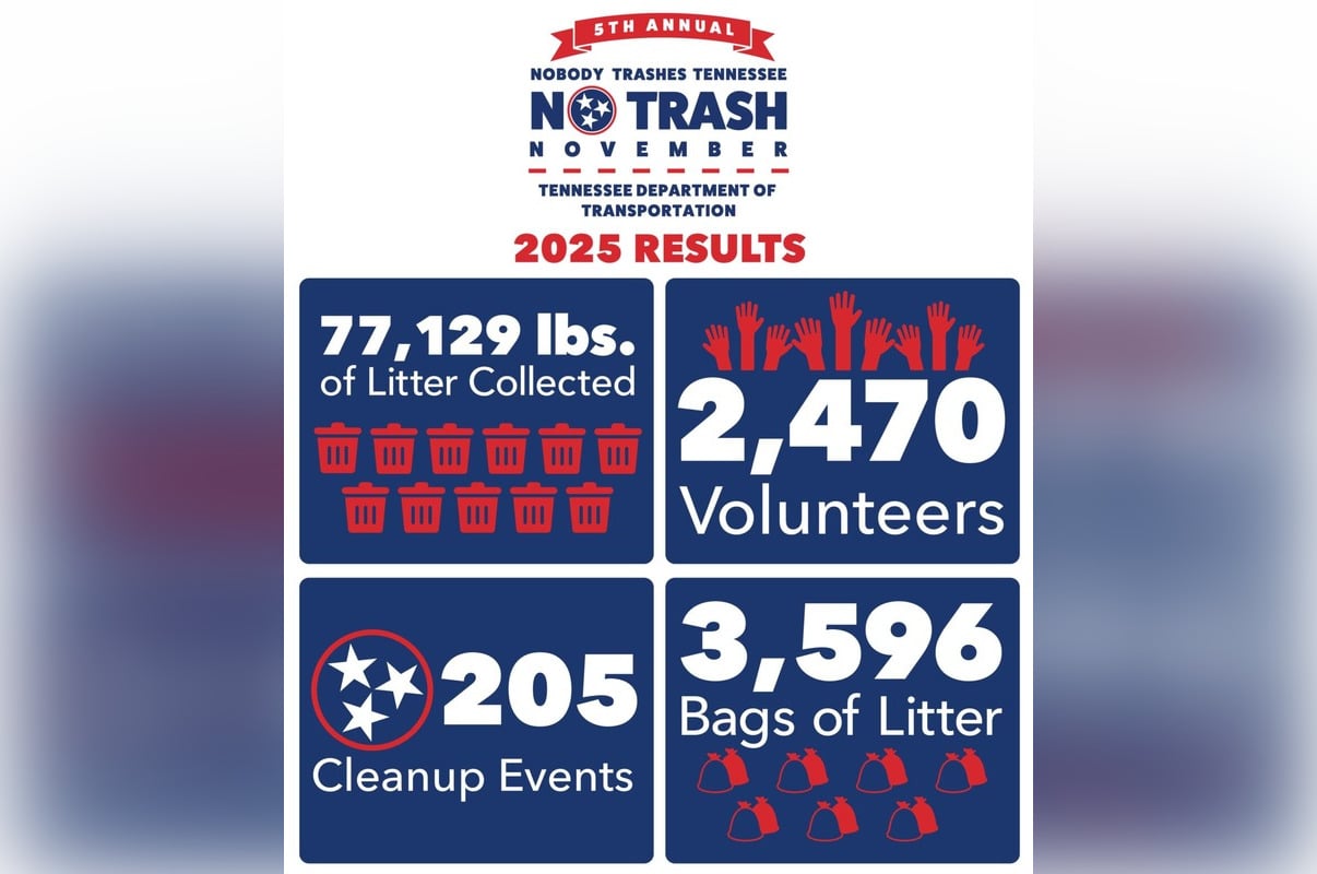 UPDATE: The Tennessee Department of Transportation (TDOT) has just announced a remarkable achievement in its 5th Annual No Trash November campaign, successfully clearing over 77,000 pounds of litter from the state’s roads and waterways. This significant effort, exceeding the 75,000-pound goal, involved 2,470 volunteers participating in 205 cleanup events across the state.