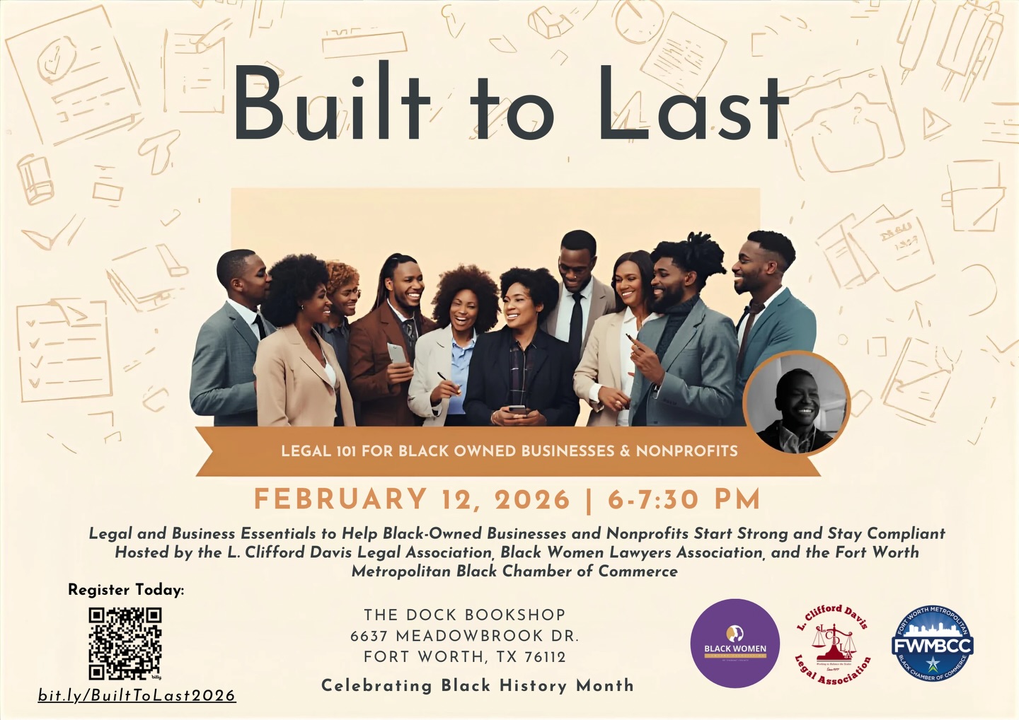 URGENT UPDATE: A crucial workshop titled Built to Last is scheduled for February 12, 2023, at 6:00 PM at The Dock Bookshop in Fort Worth. This event, hosted by the L. Clifford Davis Legal Association (LCDLA) in partnership with the Black Women Lawyers Association of Tarrant County (BWLA) and the Fort Worth Metropolitan Black Chamber of Commerce, is designed to empower Black-owned businesses and nonprofits with essential legal knowledge.